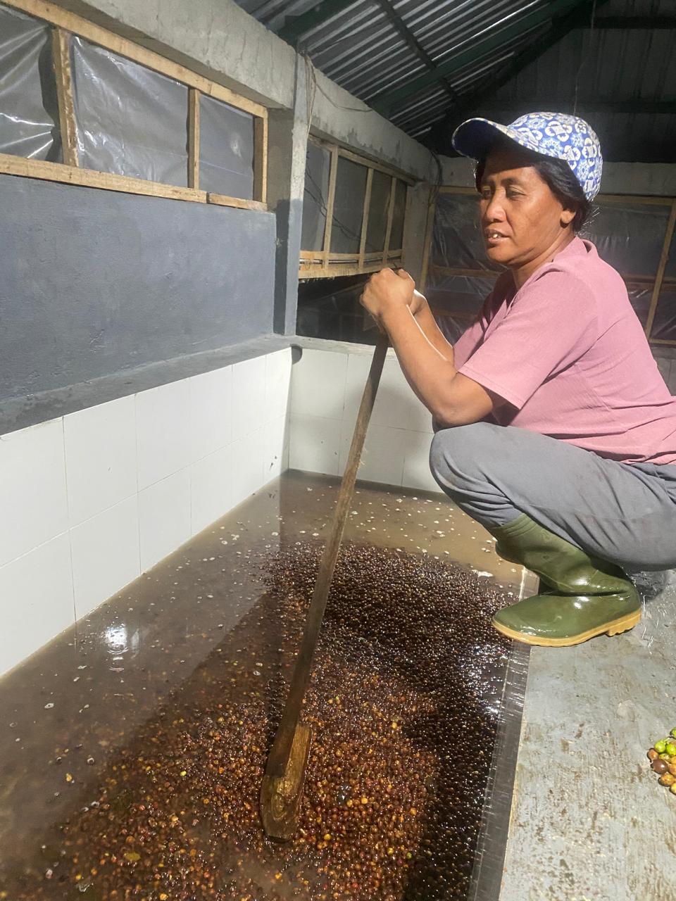 4. שופכים 50 מ״ל של מים ומערבבים עם כף וממתינים כחצי דקה